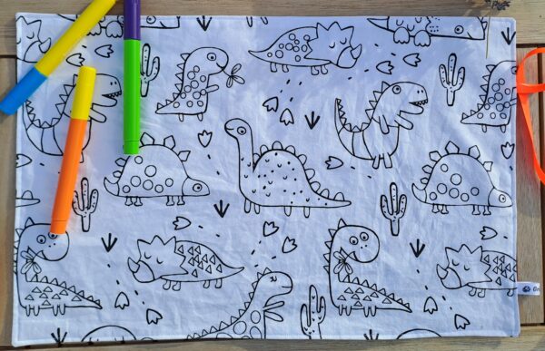 Feuille de coloriage lavable sur le thème des Dinosaures.