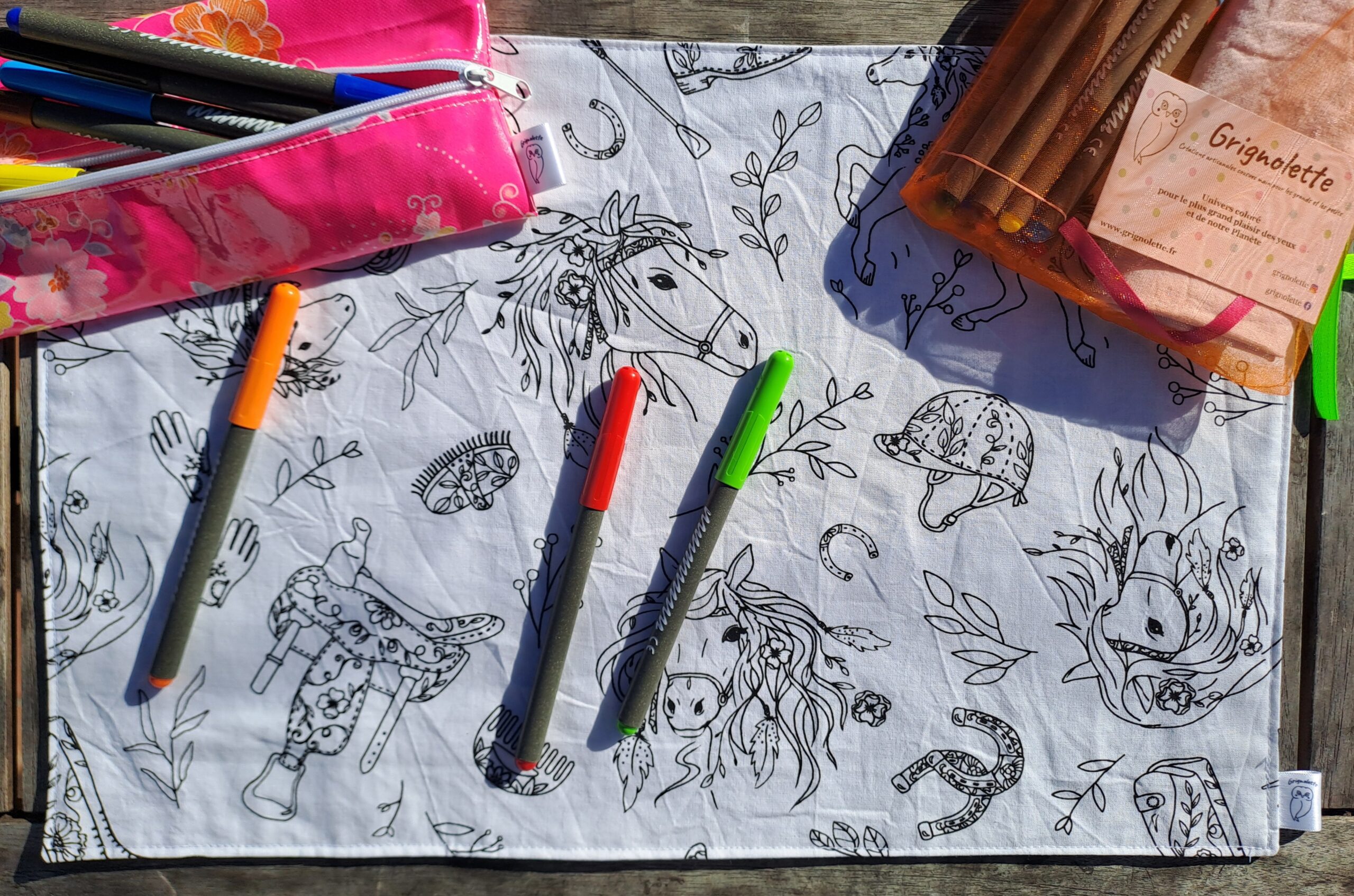 Feuille de coloriage lavable – Chevaux