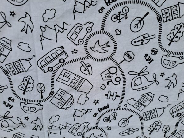La feuille de coloriage est composé d’un côté blanc pour laisser votre enfant exprimer sa créativité et d’un côté à motif sur le thème de la plage. Il est aussi possible d’utiliser des gommettes sur la feuille de coloriage. Le tissu permet de pouvoir coller, décoller et recoller les gommettes plusieurs fois. La feuille de coloriage est l’alternative zéro déchet aux feuilles de papier.