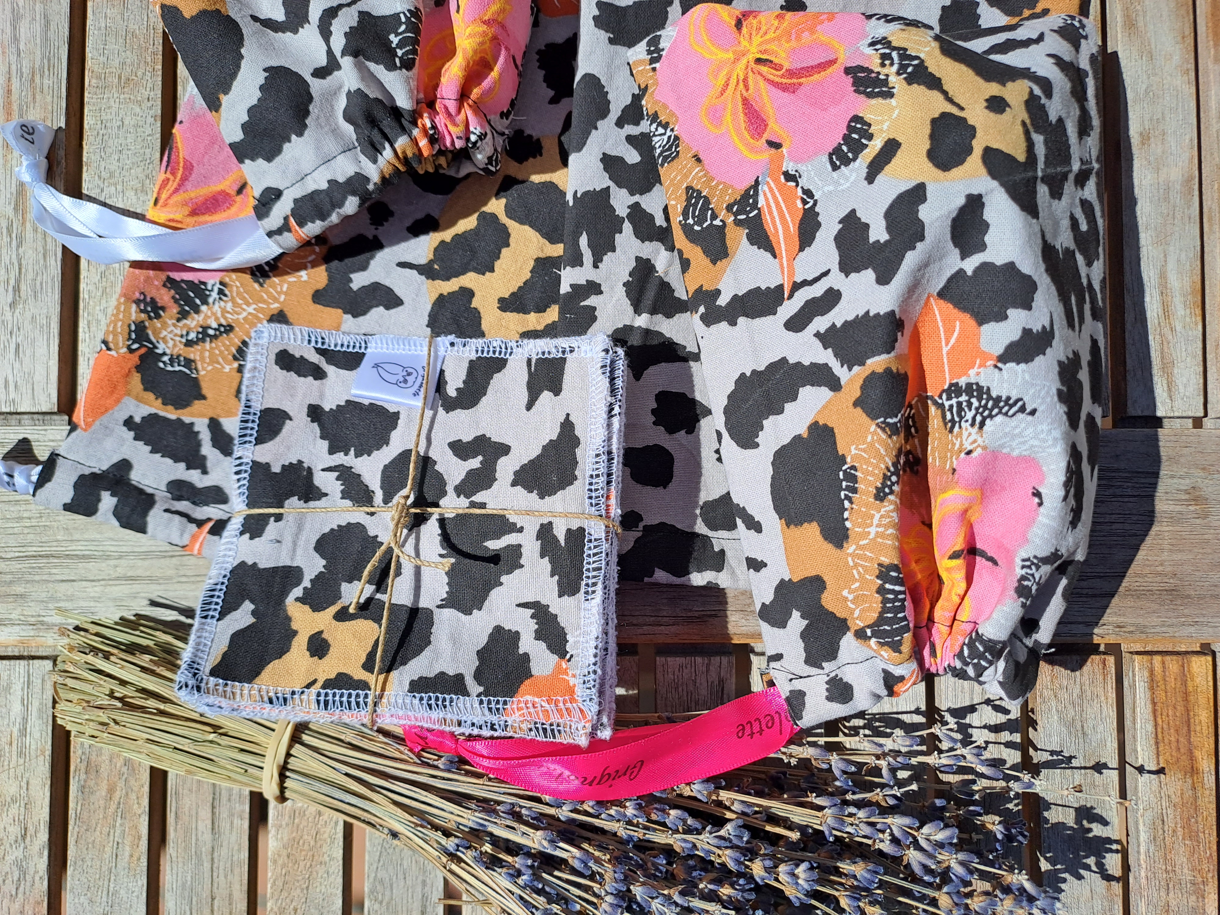 Le petit pochon assorti est idéal pour transporter vos lingettes lavables.