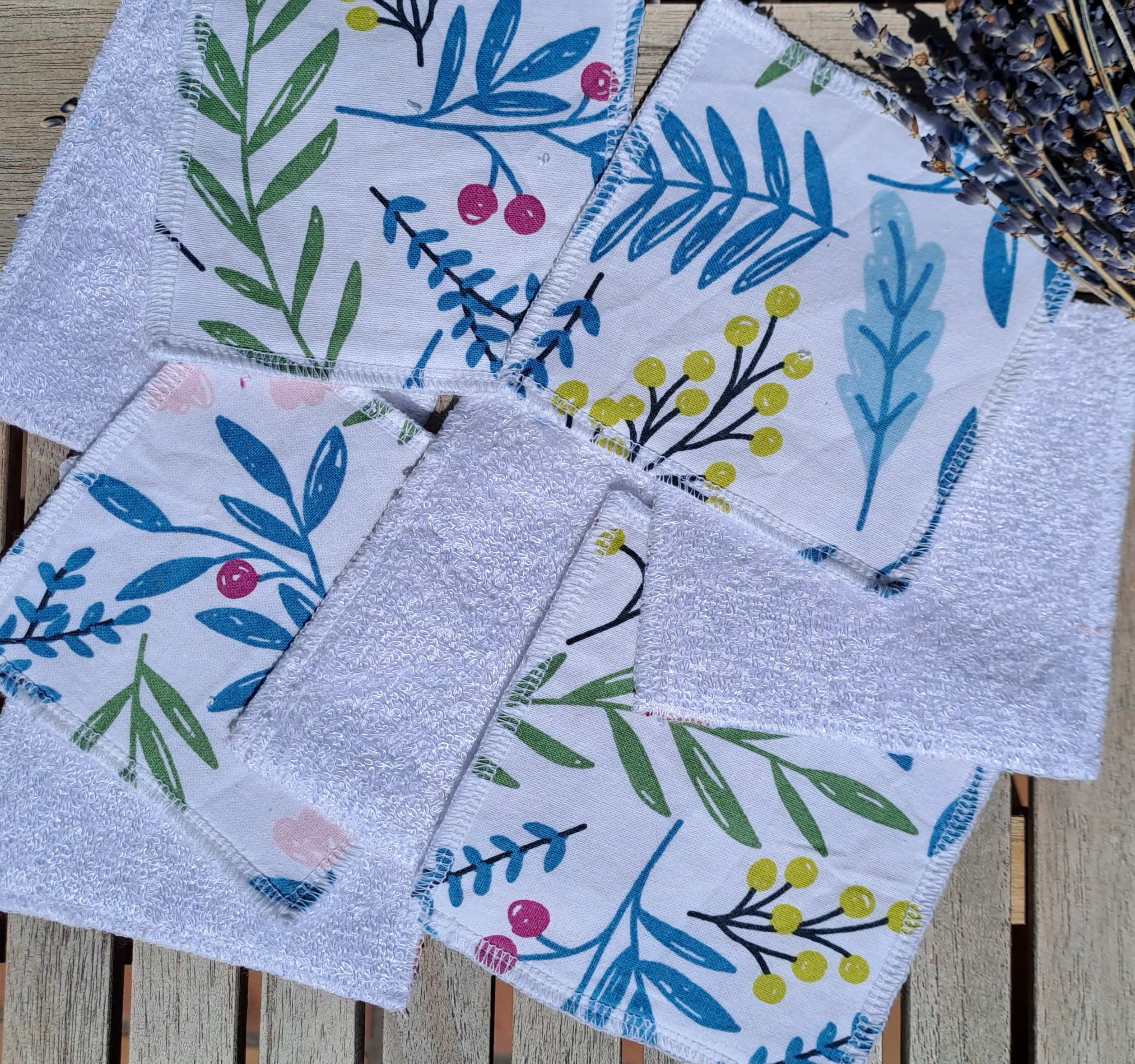 Lot de 6 lingettes lavables sur le thème de la Nature