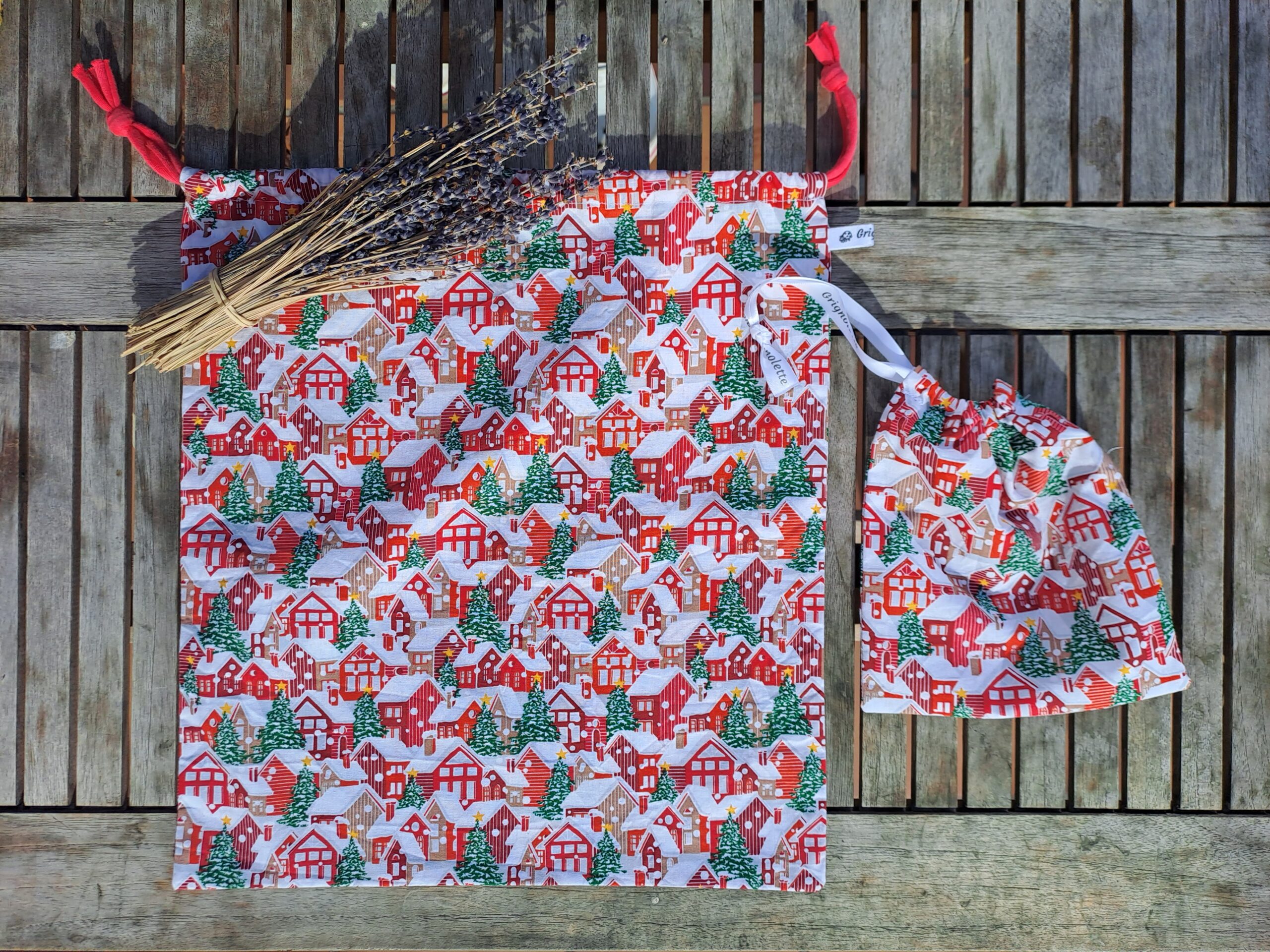 Le pochon paquet cadeau maisons ira à merveille sous votre sapin pour ravir petits et grands.