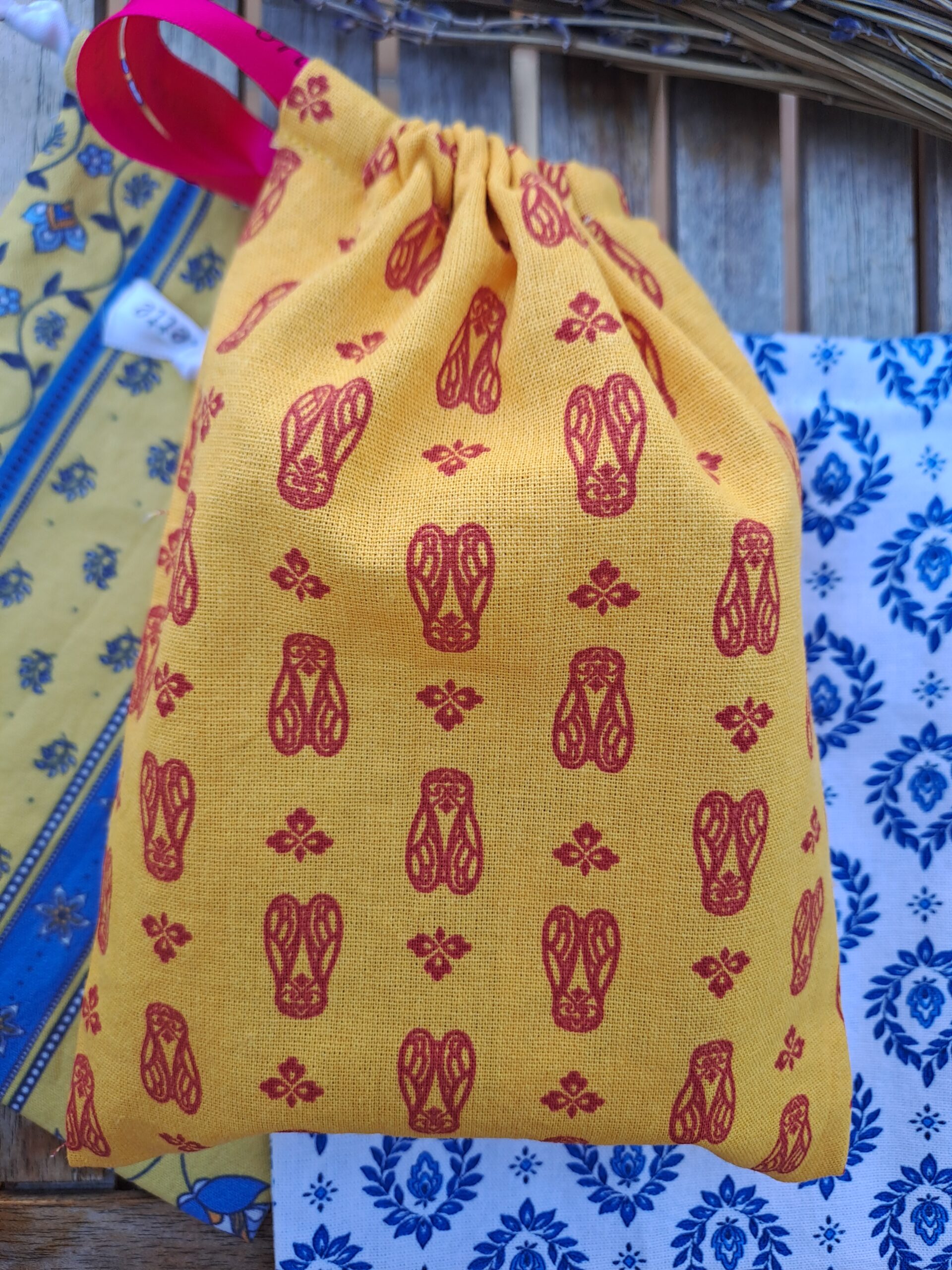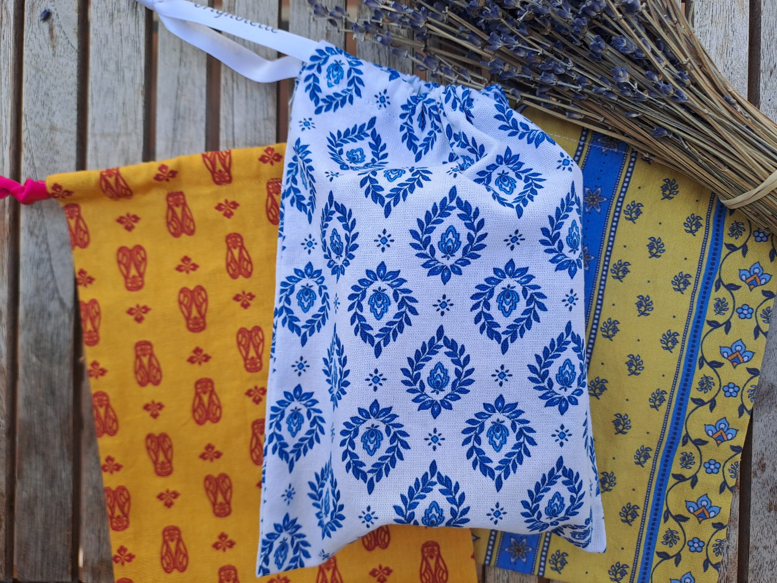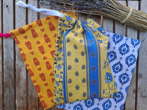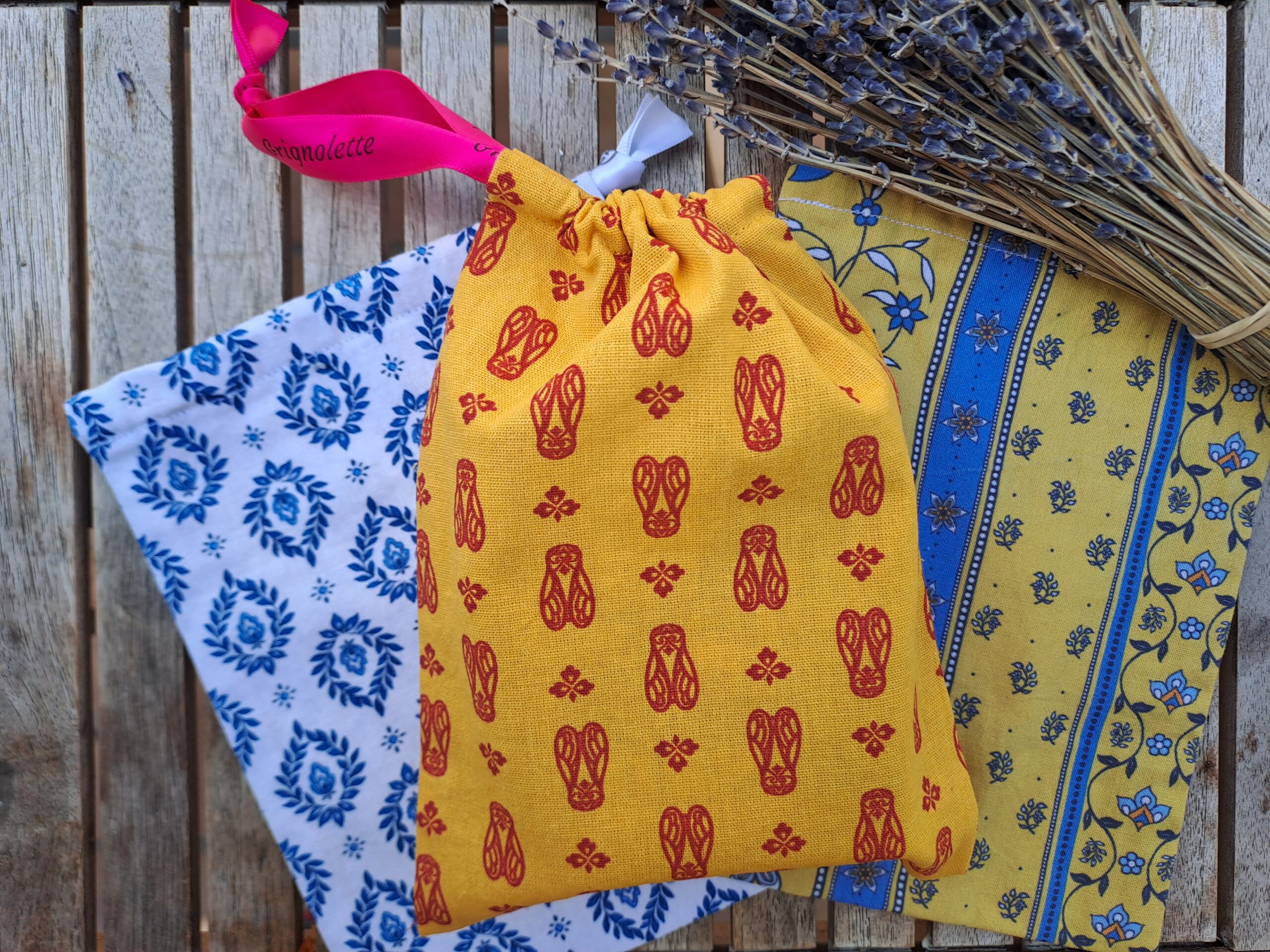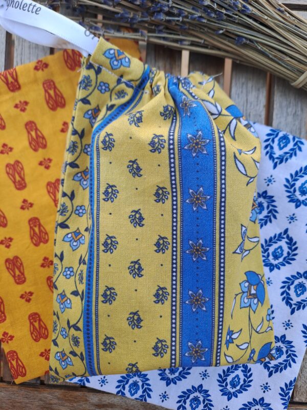 Avec ces couleurs de Provence, le petit pochon Provençal est idéal pour transporter vos lingettes lavables , un chargeur, des cosmétiques…